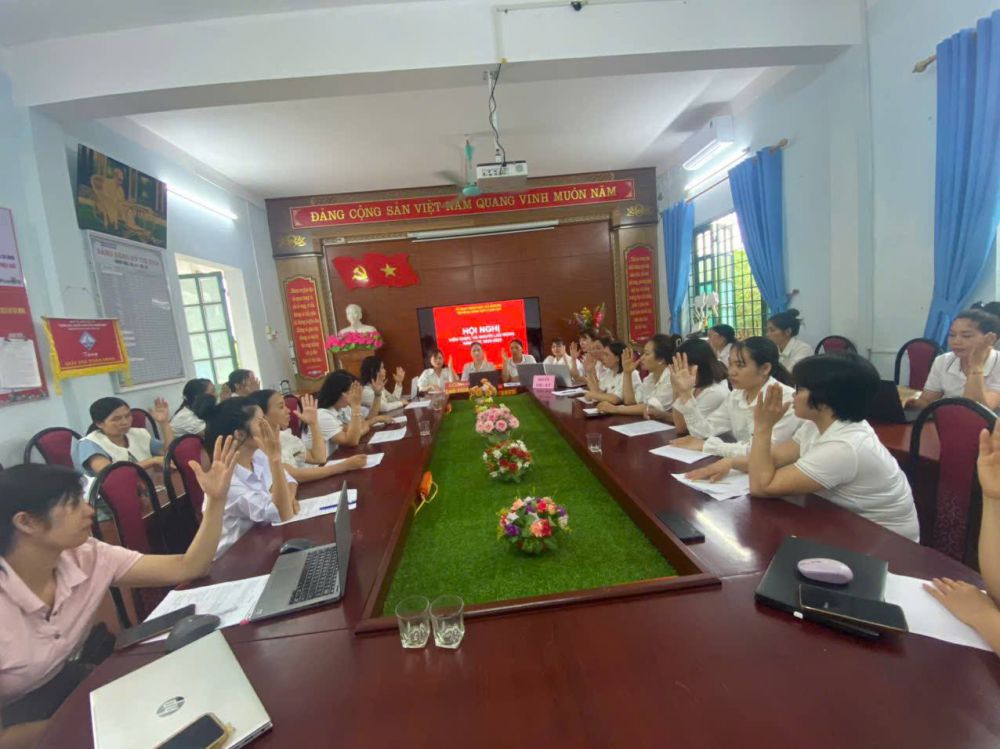 Tại hội nghị, các đc CBQL, GV, NV đã được nghe và thảo luận các báo cáo tổng kết trong năm học 2024–2025, trong đó nêu bật những kết quả nổi bật về công tác chăm sóc, giáo dục trẻ, nâng cao chất lượng nuôi dạy, cũng như những khó khăn, tồn tại cần khắc phục. Hội nghị cũng đã thông qua các quy chế quan trọng gồm: Quy chế dân chủ cơ sở, Quy chế chi tiêu nội bộ, Quy chế thi đua…Đây là cơ sở để tập thể cán bộ, giáo viên, nhân viên thực hiện hiệu quả các nhiệm vụ, đảm bảo sự công khai, minh bạch và đoàn kết trong toàn trường.